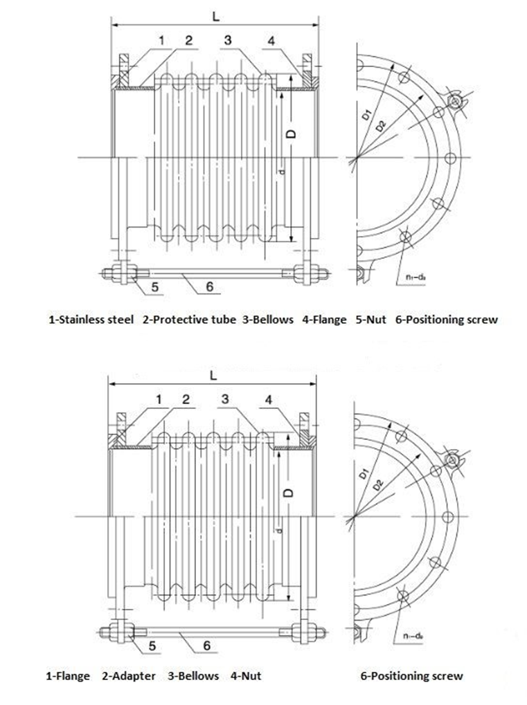 Drawing of Flange Type Stainless Steel Bellows Expansion Joint Marine Pipe Fittings